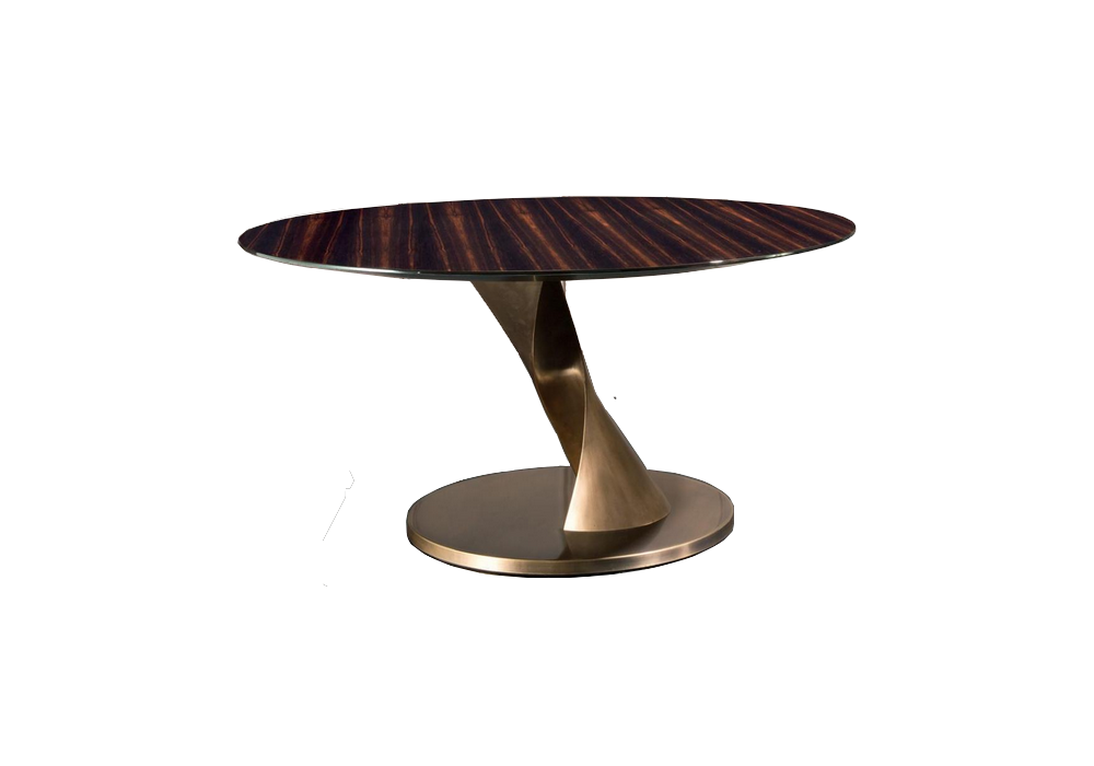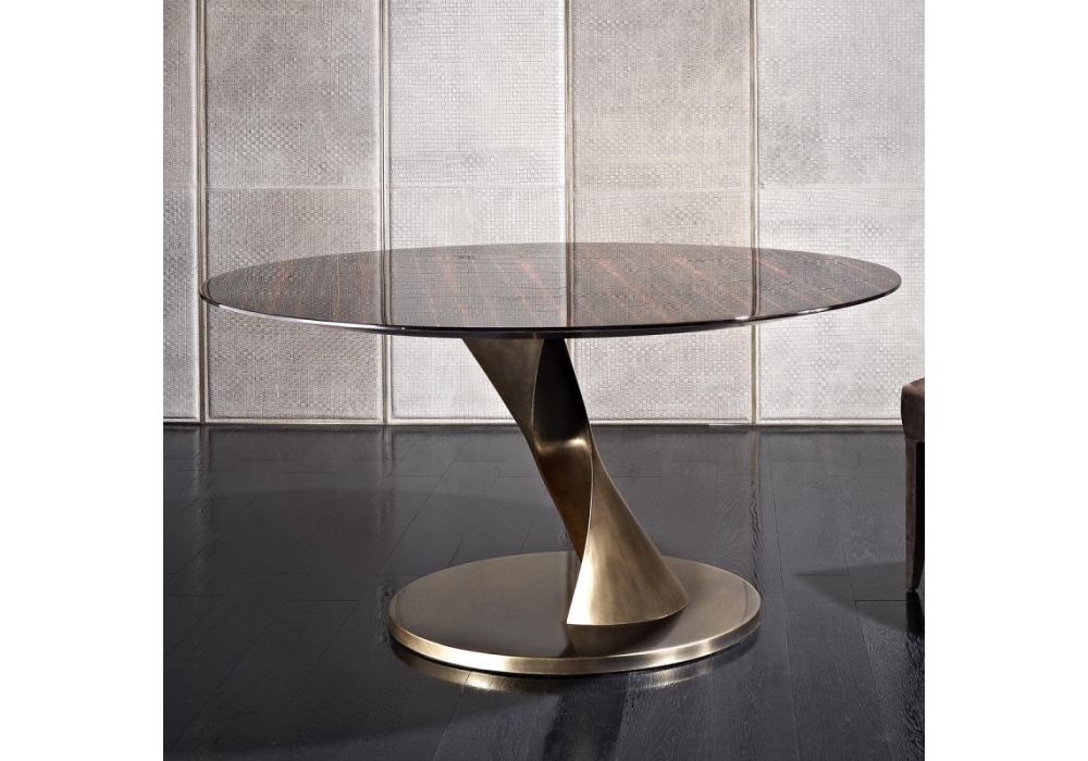 Zoe conçue par Rugiano est une table ronde disponible en différentes tailles et matériaux avec différentes finitions, elle se caractérise par des détails en laiton bronzé.