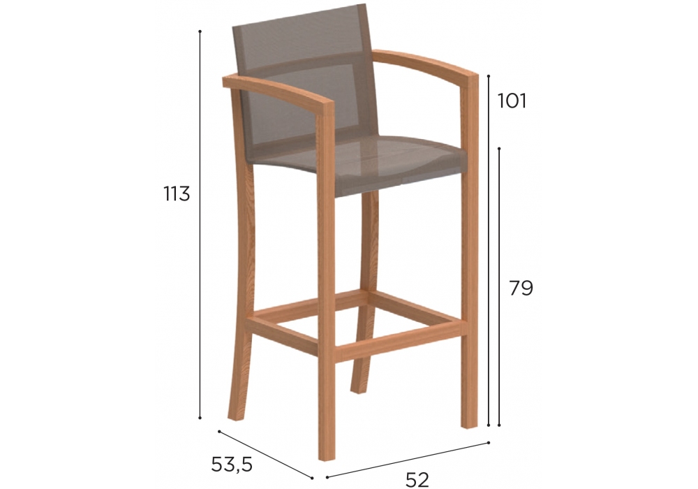 XQT conçu par Kris Van Puyvelde pour Royal Botania est un tabouret bar avec structure en teck. Assise et dossier en Batyline® disponibles en 3 couleurs.
