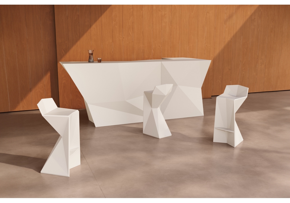 Vertex conçu par Karim Rashid pour Vondom est un tabouret en résine de polyéthylène. Disponible en différentes finitions mates ou laquées brillantes ou avec éclairage interne avec batterie.