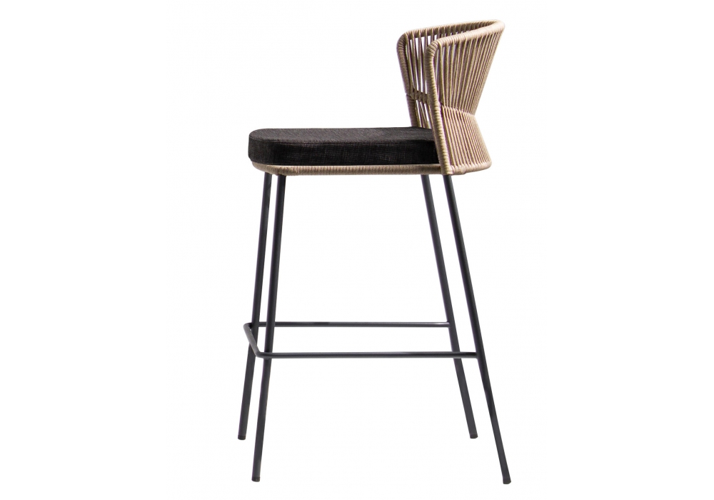 Ola conçu par Radice Orlandini pour Potocco est un tabouret d'extérieur entièrement structuré en métal peint en différentes finitions. L'assise et le dossier sont recouverts d'un tissage en corde Fly de 8 mm. Ola est disponible en deux tailles différentes.