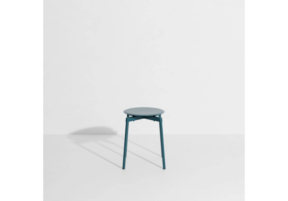 Fromme conçu par Tom Chung pour Petite Friture est un tabouret d'extérieur en aluminium avec revêtement en poudre grainé mat résistant à l'eau et aux rayons UV. Disponible en différentes finitions.