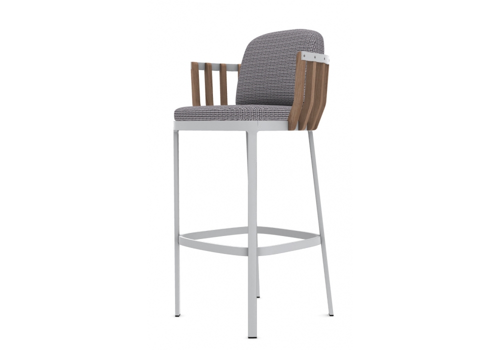 Swing conçu par Patrick Norguet pour Ethimo est un tabouret avec structure en bois de teck et aluminium peint. Les coussins sont recouverts de tissu polypropylène en version hydrofuge ou standard. Swing est disponible en différentes finitions.