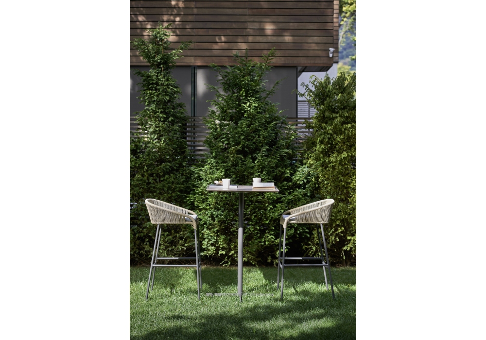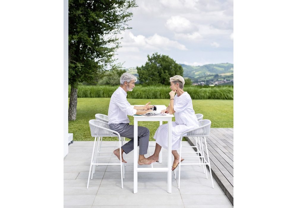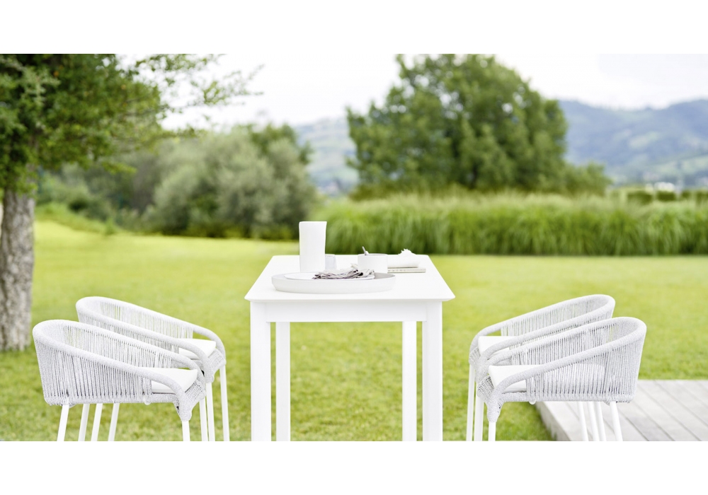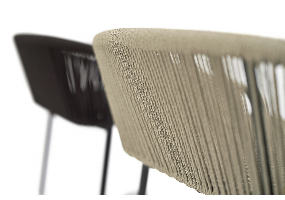 Cricket conçu par Anki Gneib pour Varaschin est un tabouret tissé à la main en fibre synthétique avec structure en aluminium enduit de poudre. Disponible en différentes finitions. Coussin en option.