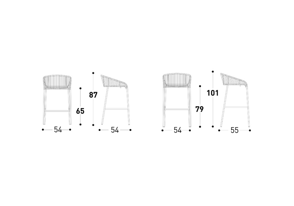 | Dimensions | - 54 x 55 x H 101 cm; - 54 x 54 x H 87 cm. |