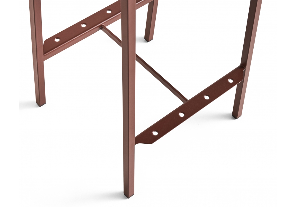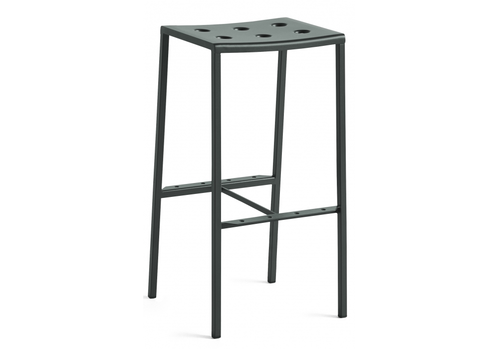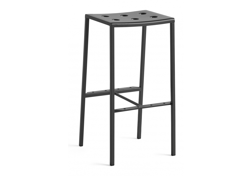 Balcony conçu par Ronan & Erwan Bourrollec pour Hay est un tabouret bar d'extérieur en acier enduit de poudre avec revêtement à deux composants; un apprêt extérieur et une couche de poudre qui constituent une barrière contre les éléments corrosifs, ce qui le rend adapté à une utilisation extérieure. Disponible en différentes finitions et dimensions. Sur demande, il est possible d'ajouter un coussin de siège.