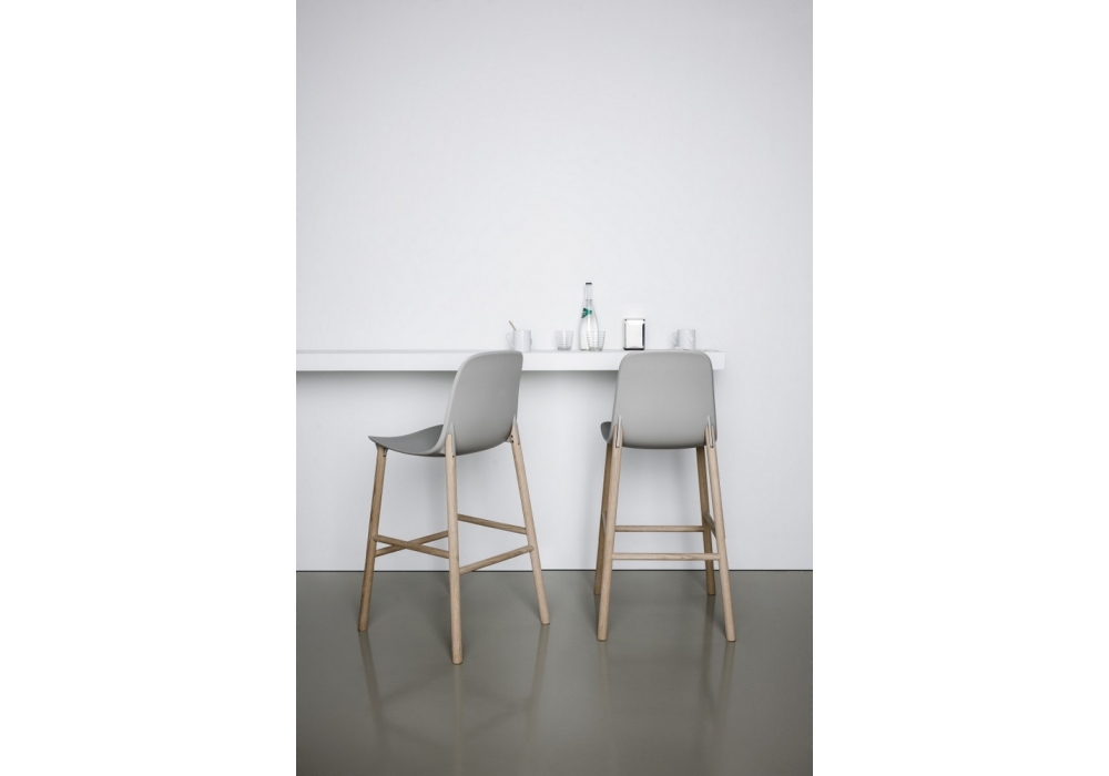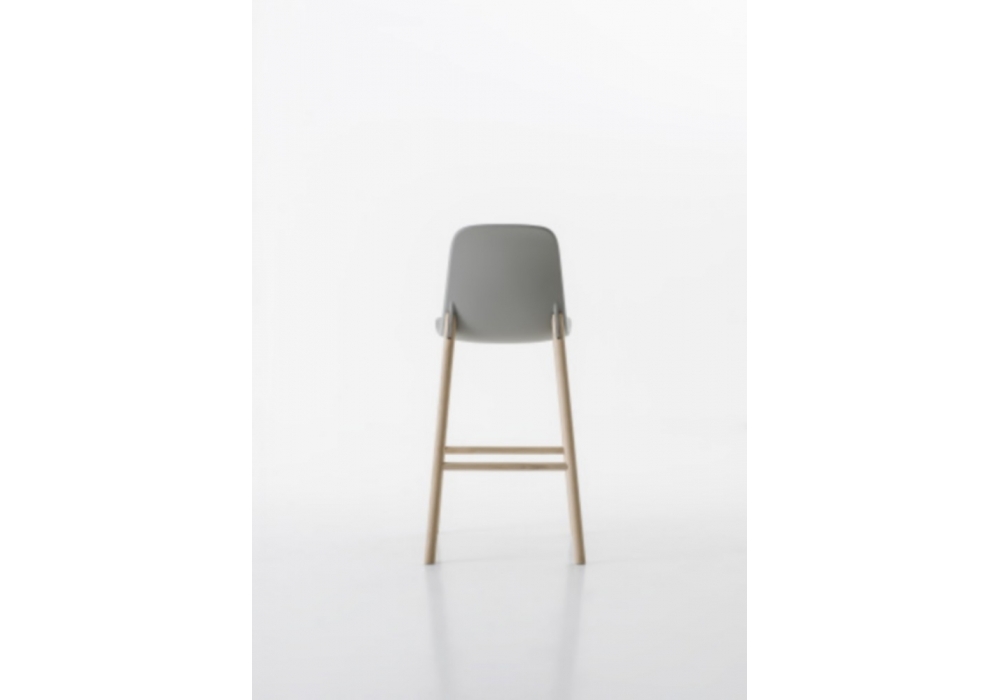 Sharky conçu par Neuland Industriedesign pour Kristalia est un tabouret avec dossier haut. Coque en polyuréthane disponible en plusieurs coloris et piètement en bois massif proposé en différentes finitions.