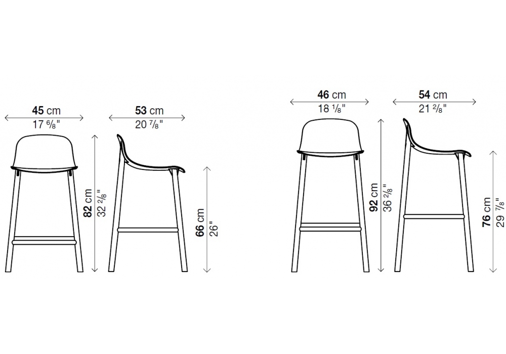 | Dimensions | 45 x 53 x H 82 cm; 46 x 54 x H 92 cm. |