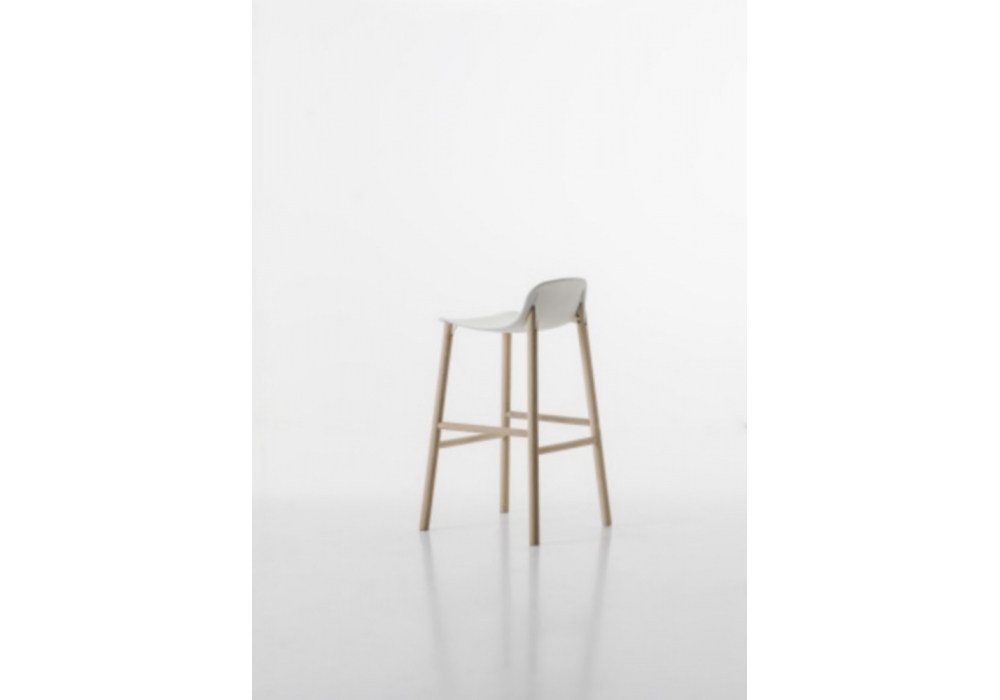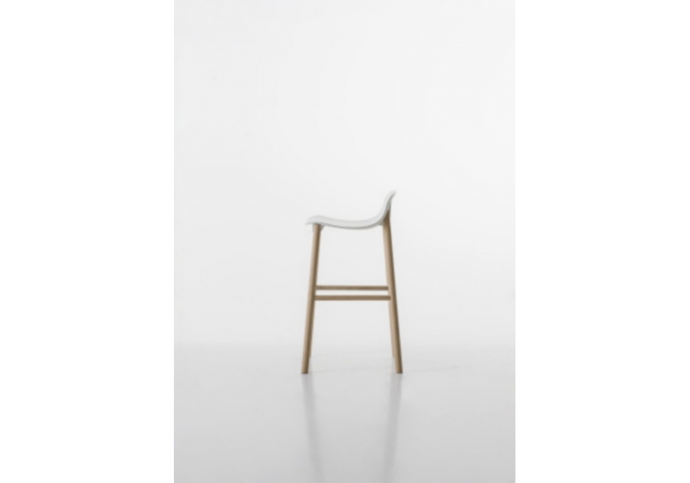 Sharky conçu par Neuland Industriedesign pour Kristalia est un tabouret avec dossier bas. Coque en polyuréthane disponible en plusieurs coloris et piètement en bois massif proposé en différentes finitions.