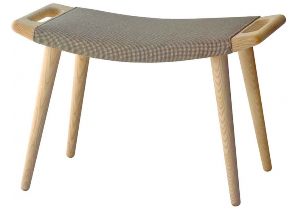 PP120 designed by Hans J. Wegner for PP Møbler has a wooden frame and comes with an upholstered seat in either fabric or leather. The handles can be specified with a wood type that differs from the legs. The stool is a strong construction with legs that penetrate and interlock with the solid beech wood frame using traditional joinery, and the upholstery is made of horsehair and cotton. It may seem as a trivial product, but it is a genuine piece of exquisite crafts.