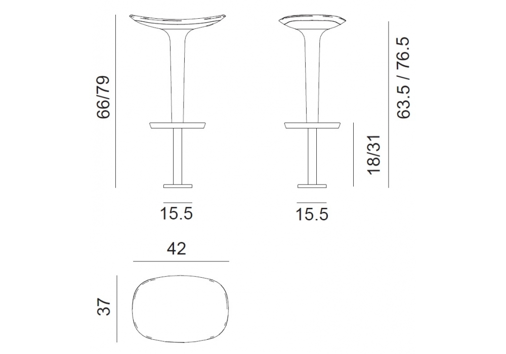 Babar conçue par Simon Pengelly pour Arper est un tabouret sur base en acier inox satiné ou chromé, prédisposée pour la fixation au sol et colonne en matière plastique, disponible en 6 coloris. L'assise est disponible en polyuréthane intégral souple ou avec coussin avec revêtement cuir, similicuir, tissu ou tissu fourni par le client. Hauteur réglable ou - sur demande - hauteur fixe de l'assise comprise entre 65 et 78 cm.
