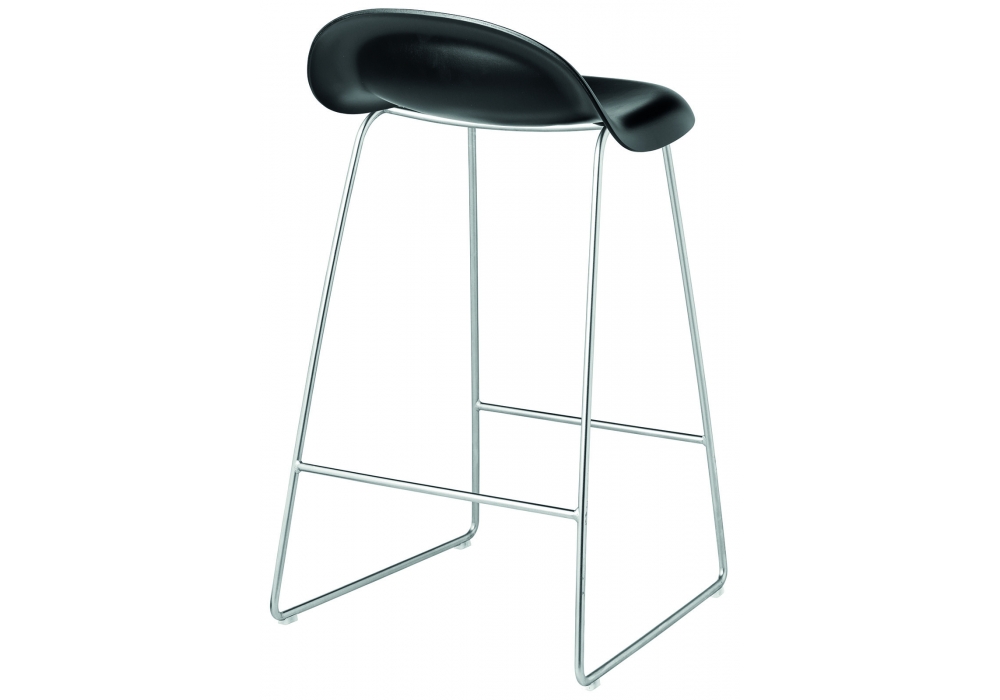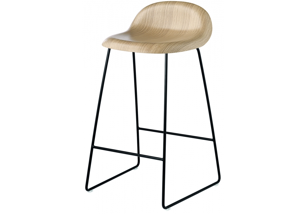 3D conçu par Komplot Design pour Gubi est un tabouret avec coque en Hirek ou bois et base en noir ou chrome. Disponible en différentes finitions.