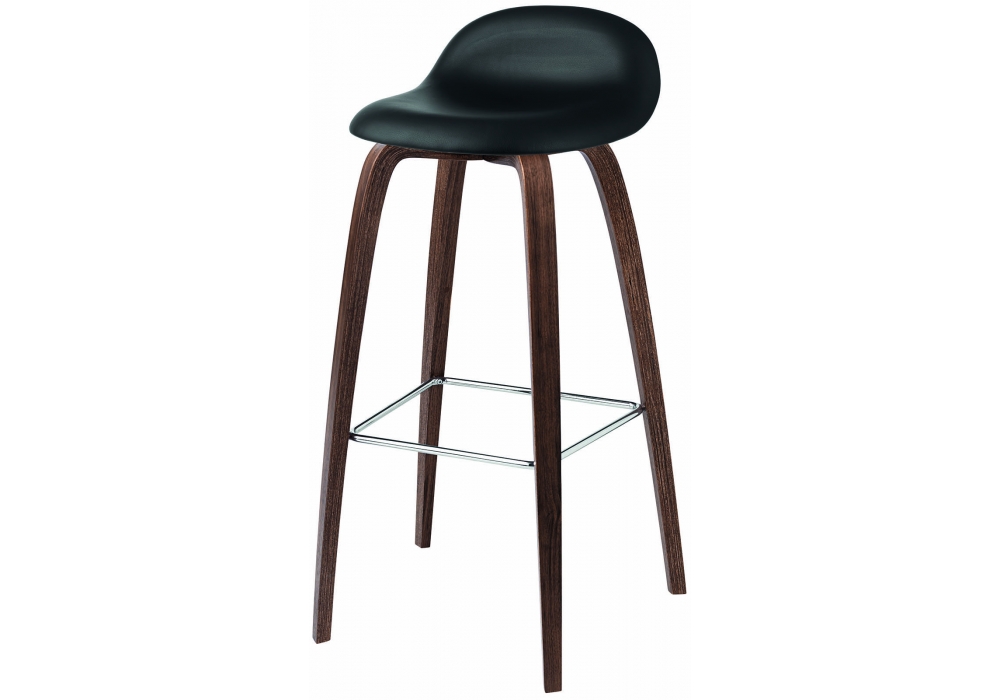 3D conçu par Komplot Design pour Gubi est un tabouret disponible avec coque tapissé en tissu ou cuir et jambes de bois. Disponible en différentes finitions.