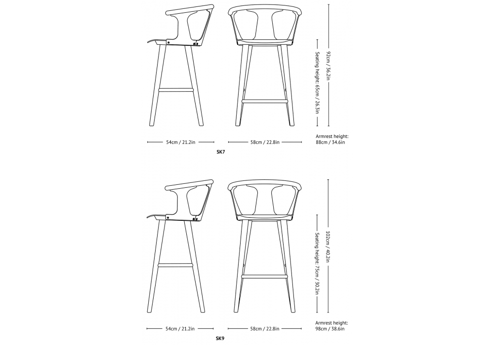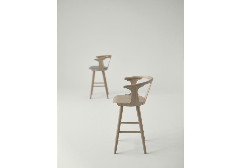 In Between conçu par Sami Kallio de &Tradition est un tabouret réalisé avec des pieds tournés et des accoudoirs en chêne massif, l'assise et les panneaux latéraux sont moulés en placage de chêne. Disponible en différentes finitions et dimensions.