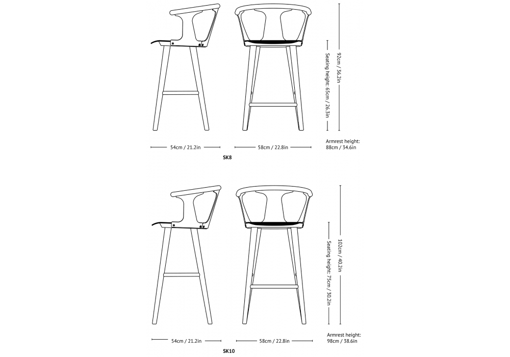 In Between conçu par Sami Kallio de &Tradition est un tabouret réalisé avec des pieds tournés et des accoudoirs en chêne massif, l'assise et les panneaux latéraux sont moulés en placage de chêne. Assise rembourrée de mousse HR et recouverte de tissu ou de cuir. Disponible en différentes finitions et dimensions.