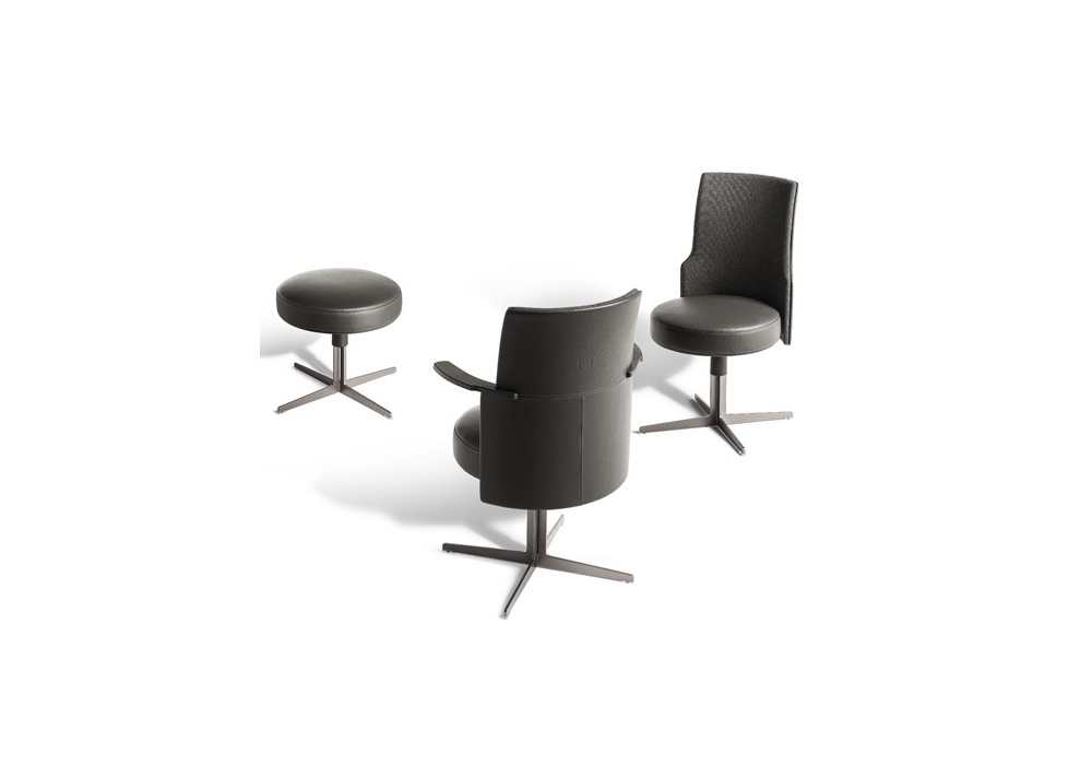 Jeff conçu par Jean-Marie Massaud pour Poltrona Frau est un tabouret disponible dans la version fixe ou pivotante. La base en acier est proposée en version fixe ou pivotante avec rotation à 360° avec retour automatique dans la position de départ. Le revêtement est en cuir Pelle Frau®.