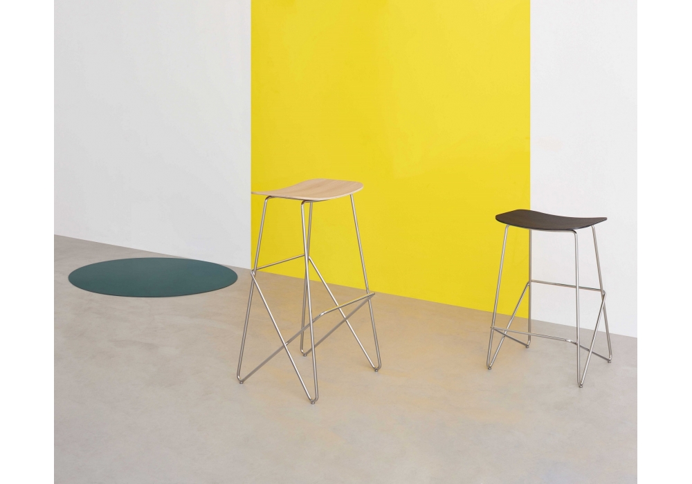 Endless 719 conçu par Arik Levy pour Desalto est un tabouret avec pietement en tige d'acier. Assise en MDF laqué ou revêtu en chêne. Le repose-pieds est protégé par un profilé en acier inoxydable, sauf la version avec la base de chrome. Disponible en deux tailles.