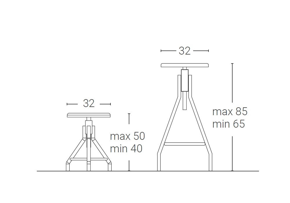 | Dimensions | Ø 32 x H 40/50 cm; Ø 32 x H 65/85 cm. |