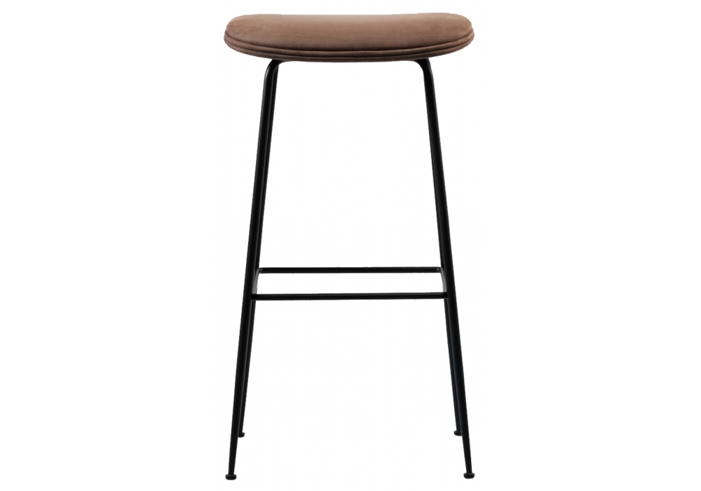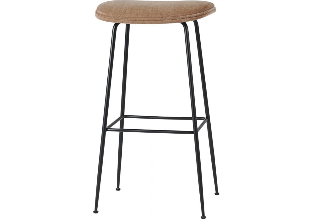 Beetle conçu par GamFratesi pour Gubi est un tabouret bar avec jambes en acier enduit de poudre noire, laiton ou chrome noir. Revêtement en tissus ou cuir. Disponible en deux dimensions.