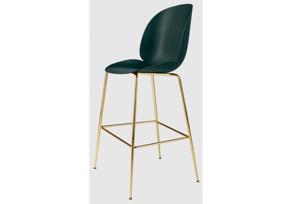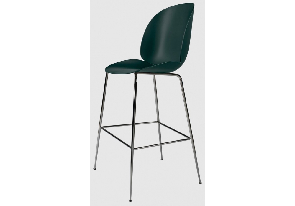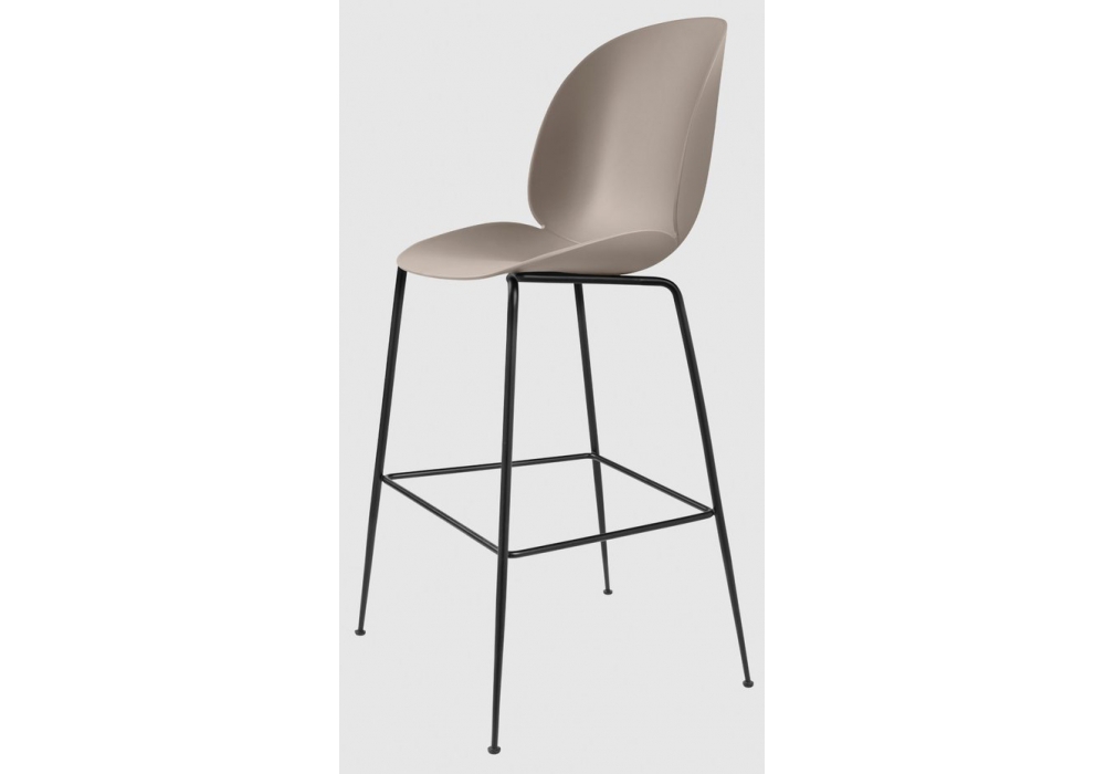 Beetle conçue par GamFratesi pour Gubi est une chaise bar avec base conique en acier peint. Coque en polypropylène disponible en différentes finitions.