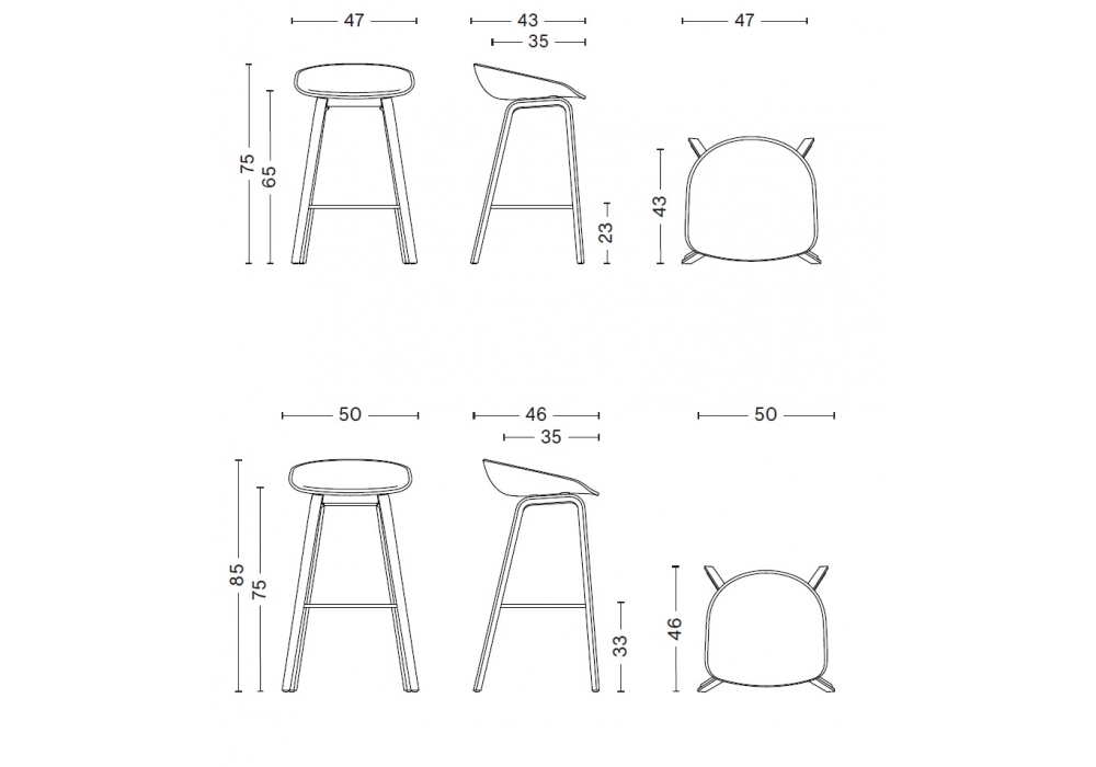| Dimensions | • 47 x 43 x H 75 cm; • 50 x 46 x H 85 cm. |