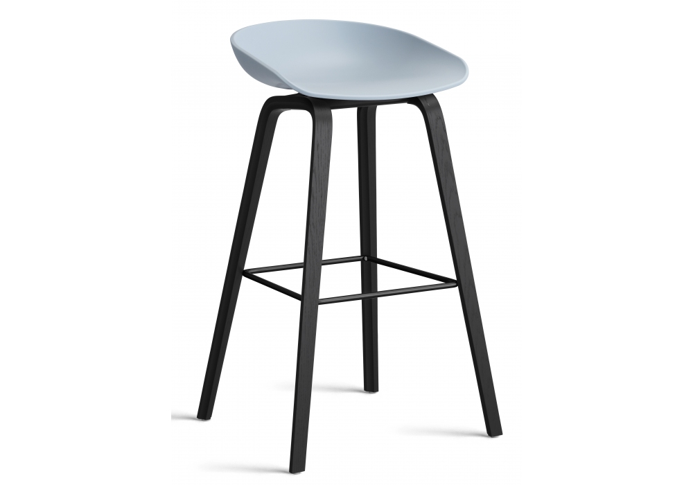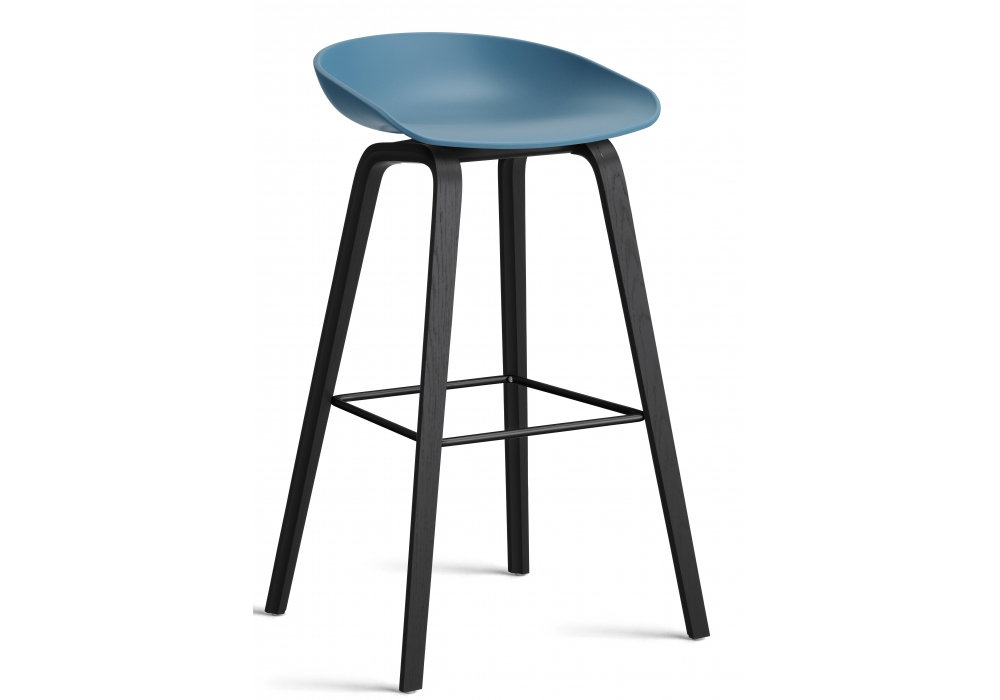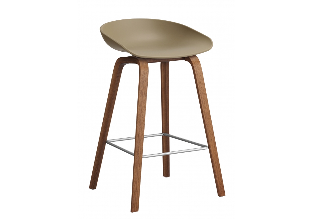About a Stool AAS 32 conçu par Hee Welling & Hay pour Hay est un tabouret avec assise en polypropylène moulé par injection de couleur unie, base en chêne ou noyer et repose-pieds en acier inoxydable poli ou noir. Disponible en différentes dimensions et finitions.