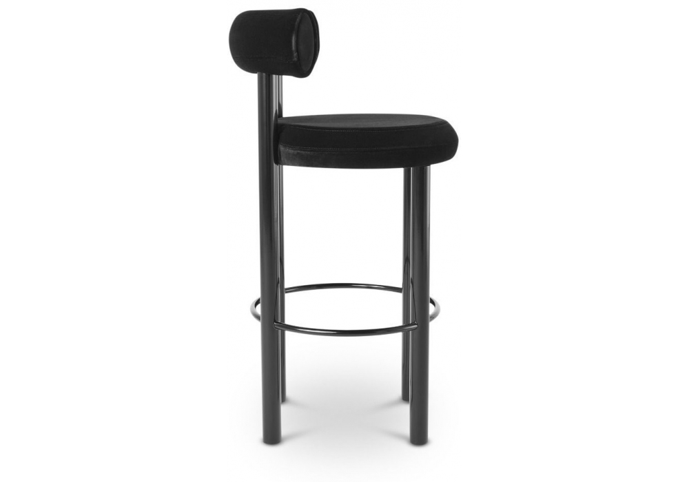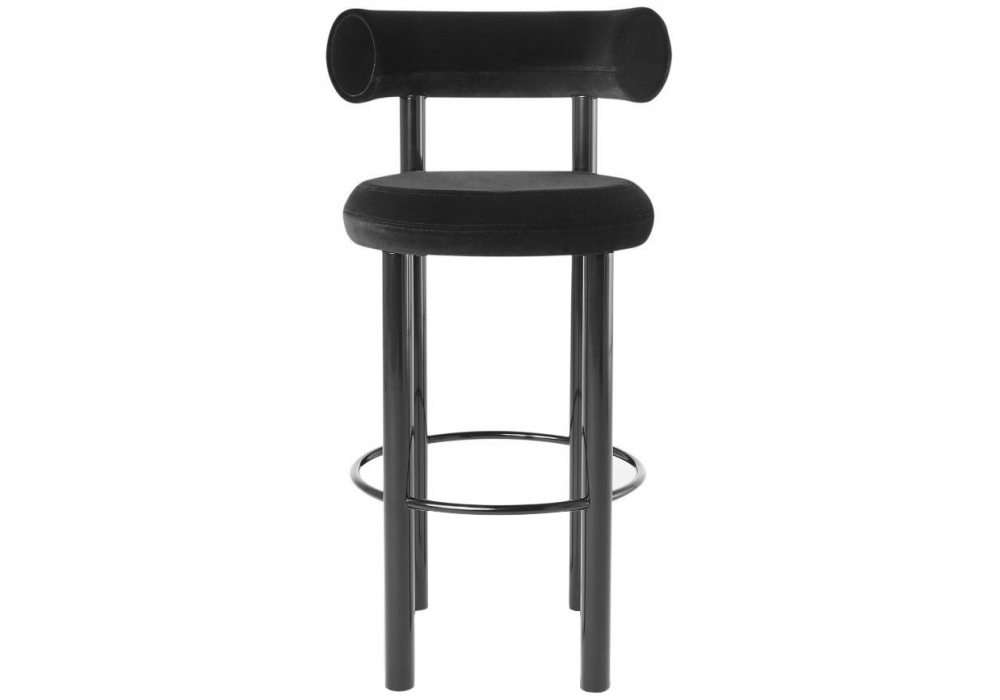 Fat Stool conçu par Tom Dixon est un tabouret avec structure et repose-pieds en acier peint en poudre noir brillant. Assise et dossier en caoutchouc mousse et revêtement en tissu. Disponible en deux hauteurs.