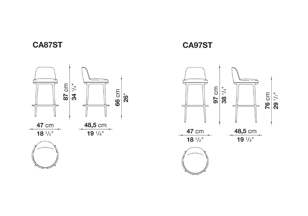 | Dimensions | 47 x 48,5 x H 87 cm; 47 x 48,5 x H 97 cm. |
