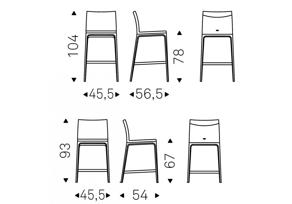 | Dimensions | 45,5 x 56,5 x H 104 cm; 45,5 x 54 x H 93 cm. |