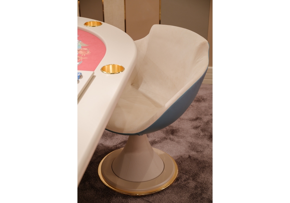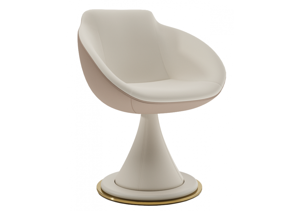 Comfort Chair conçue par Vismara Design est une chaise pivotante recouverte sur la partie du siège en econabuk et à l'extérieur en cuir pleine fleur, pied recouvert de cuir pleine fleur, piètement en bois laqué mat et détails en métal. Choix de couleurs.