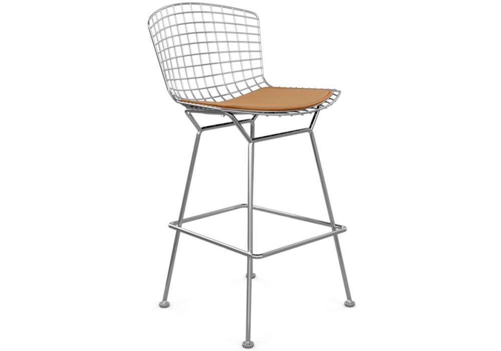 Bertoia, conçu par Harry Bertoia pour Knoll, est un tabouret avec structure en tiges d'acier soudées à chaque intersection en finition chrome brillant, satiné, bronze ou Rilsan blanc ou noir. Disponible dans la version avec coussin ou entièrement tapissé.