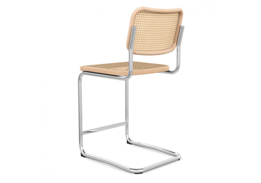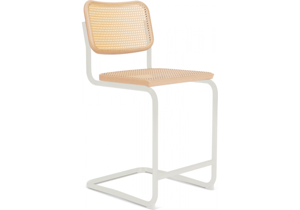 Cesca conçu par Marcel Breuer pour Knoll est un tabouret avec structure tubulaire avec finition peinture époxy mate ou chrome brillant. Structure en bois de hêtre peint naturel ou laqué noir. Le cannage est réalisé à la machine.