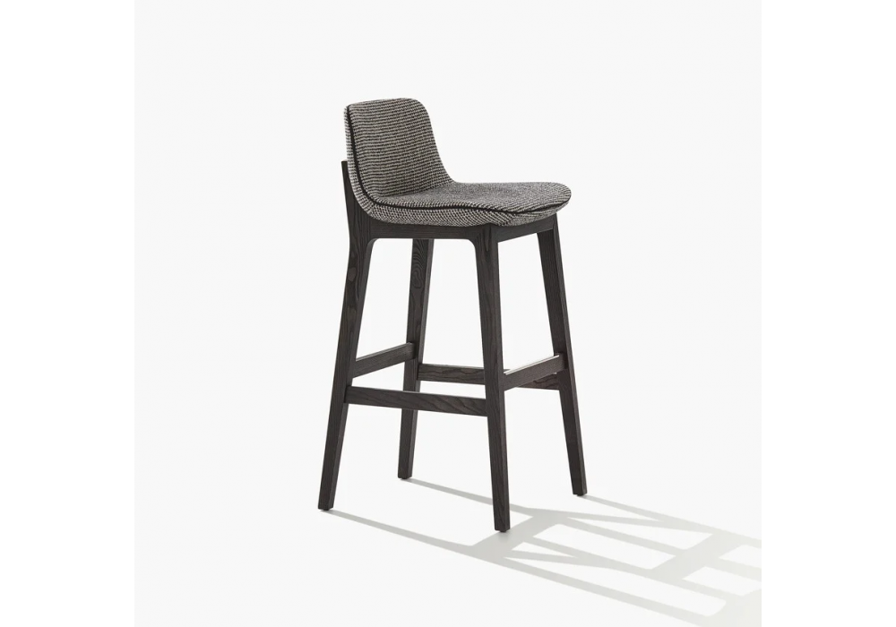 Ventura conçu parJean-Marie Massaud pour Poliform est un tabouret avec piètement en bois massif. Revêtement en tissu ou cuir.