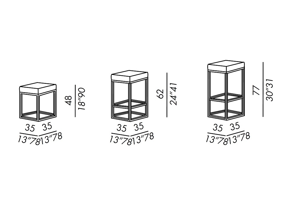 | Dimensions | 35 x 35 x H 48 cm; 35 x 35 x H 62 cm; 35 x 35 x H 77 cm. |