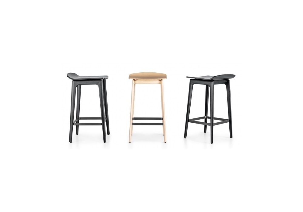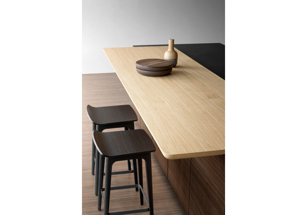 Woody conçu par Francesco Meda pour Molteni&C est un tabouret réalisé avec anneau repose-pieds en acier peint étain et structure en frêne teinté naturel ou noir.
