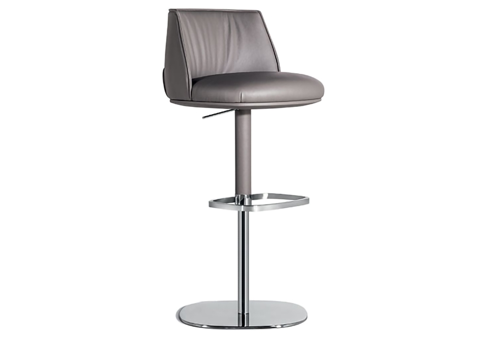 Archibald conçu par Jean-Marie Massaud pour Poltrona Frau est un tabouret avec base qui se compose d'une colonne en acier inoxydable chromé, qui contient le vérin à gaz, un repose-pieds et une plaque de base au sol. La coque du siège est en polyuréthane rigide moulé, rembourrée en polyuréthane moulé souple et ouate de polyester rembourrée en tissu ou en cuir Pelle Frau.
