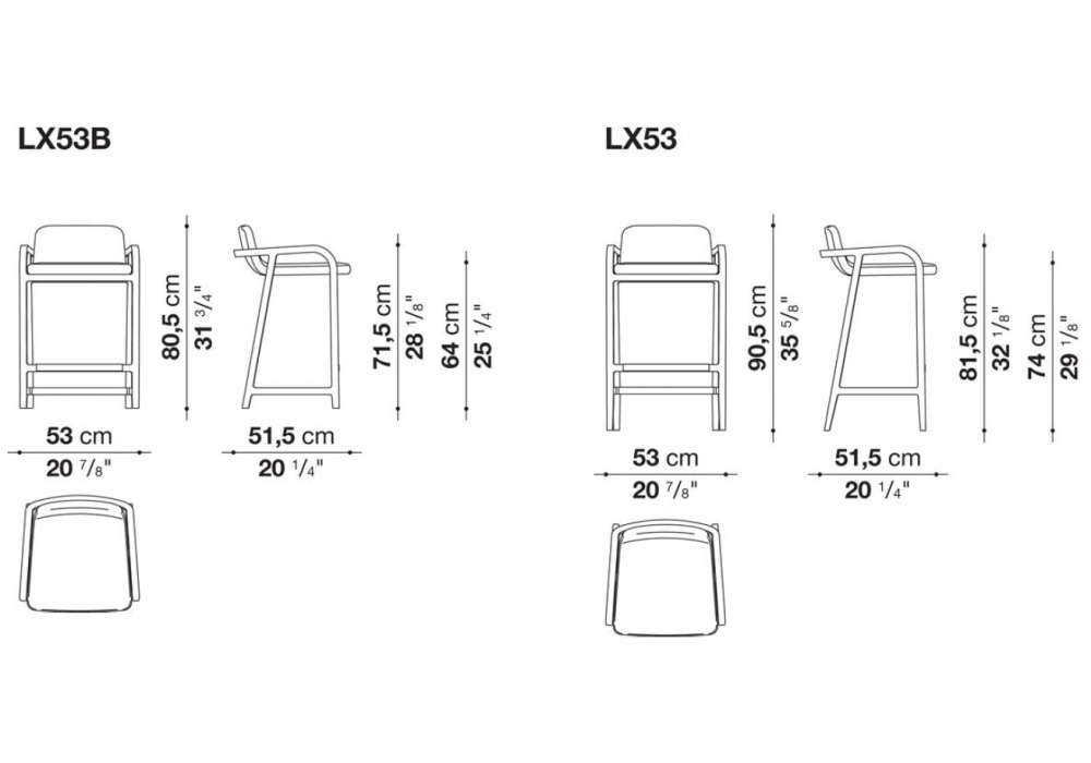 | Dimensions | 53 x 51.5 x H 80.5 cm; 53 x 51.5 x H 90.5 cm. |