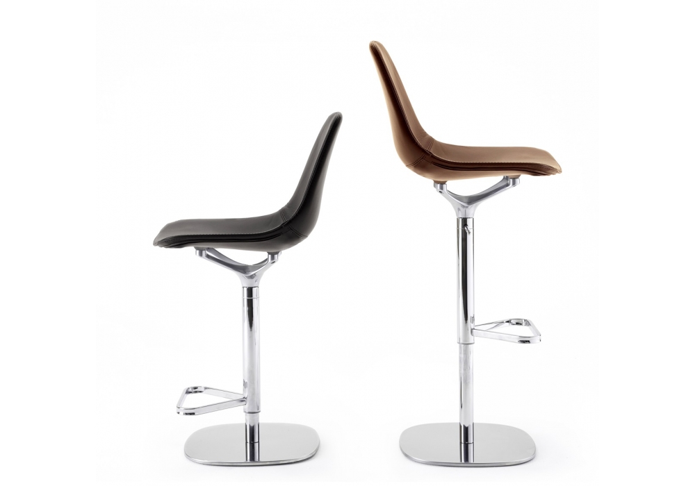 Mammamia Stool conçu par Marcello Ziliani pour Opinion Ciatti est un tabouret pivotant réalisé avec une coque en aluminium moulé sous pression avec un revêtement en tissu ou en cuir. Structure, base et repose-pieds en acier chromé. Disponible en différentes finitions.