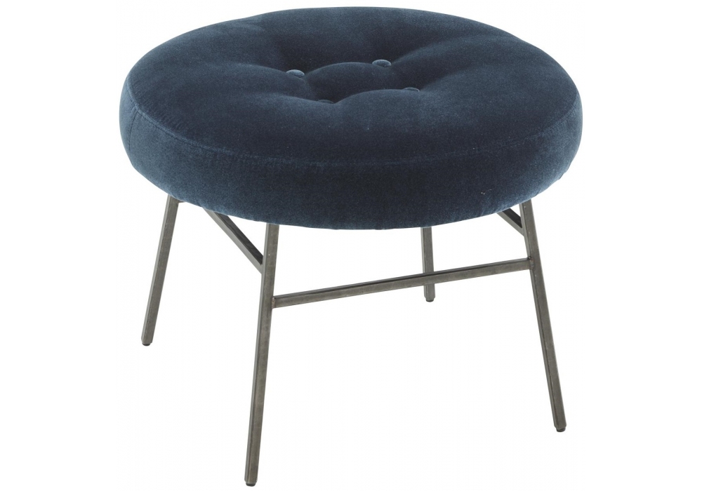 Ilot conçu par Amaury Poudray pour Ligne Roset est un tabouret avec base en acier forgé verni clair et assise en mousse tapissé en tissu Cloud Marine 64. Aussi disponible en version tissu personnalisable.
