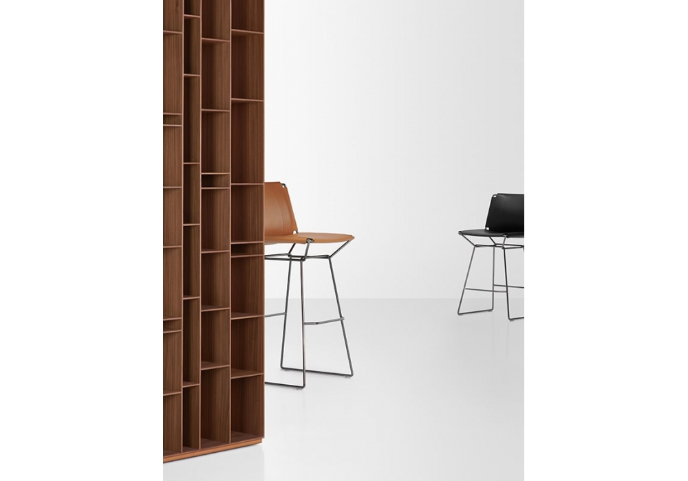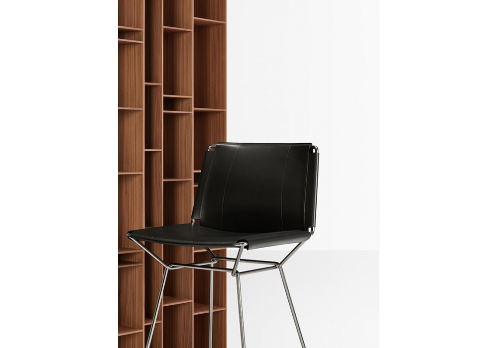 Neil Leather Stool conçu par Jean Marie Massaud pour MDF Italia est un tabouret avec structure de support en acier finition chrome noir et coque en cuir en différentes finitions.
