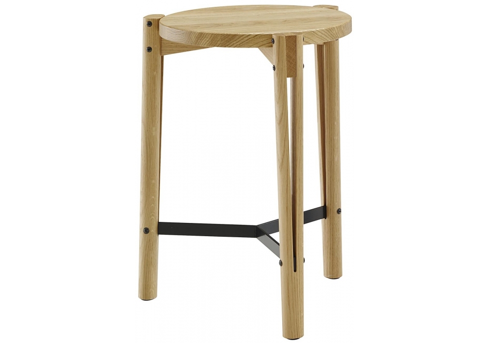 Rift conçu par C. Khorram & J.B. Ricatte pour Ligne Roset est un tabouret de bar en chêne massif avec insert en acier laqué noir.
