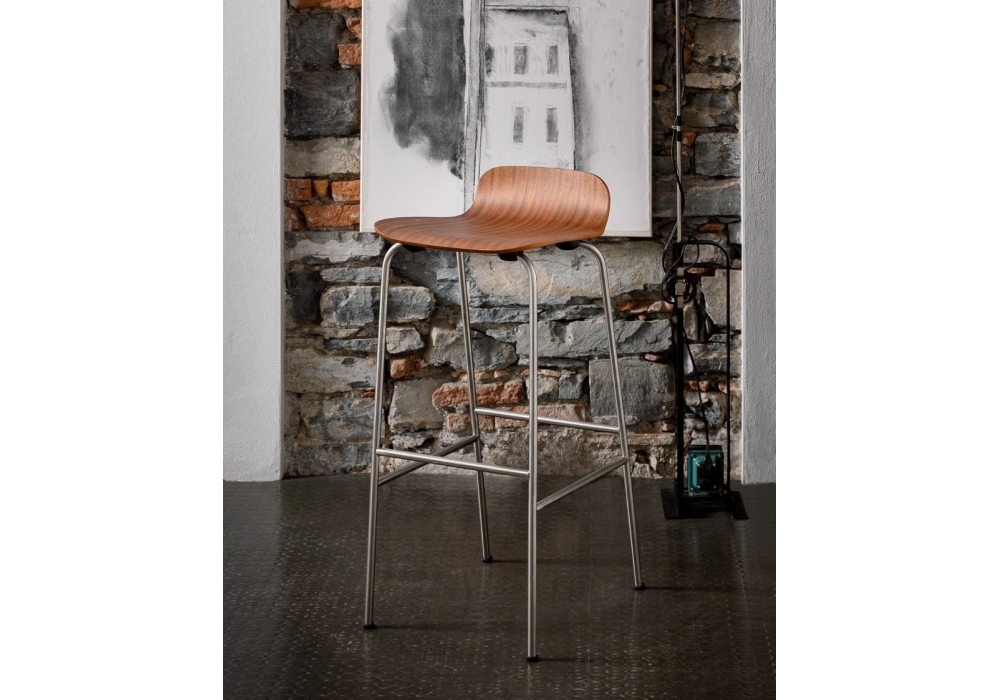 Tate Wood conçu par Jasper Morrison pour Cappellini est un tabouret avec coque en multiplis de hêtre plaqué chêne ou acajou et piètement luge en métal ou à 4 pieds. Disponible en différentes finitions et dimensions.