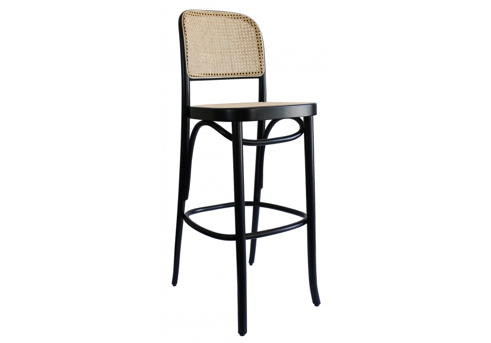 N. 811 conçu par Josef Hoffmann pour Gebrüder Thonet Vienna est un tabouret de bar en hêtre courbé, disponible en différentes finitions. Assise et dossier en paille de Vienne.