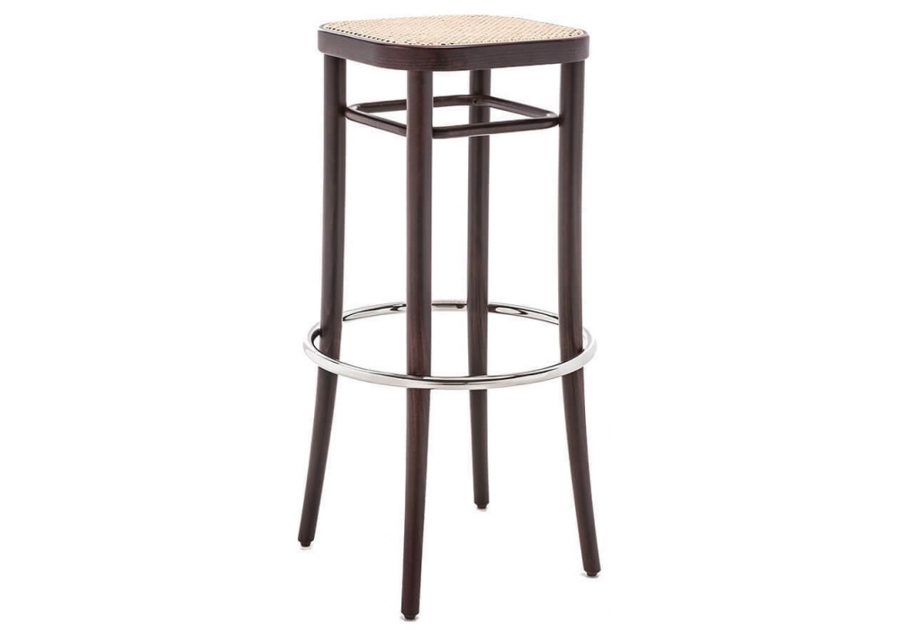 Vienna 144 conçu par Gebrüder Thonet Vienna est un tabouret de bar réalisé en hêtre courbé, disponible en différentes finitions. Assise en contreplaqué gaufré ou paille de Vienne. Repose-pieds composé d'un élément annulaire en métal chromé.