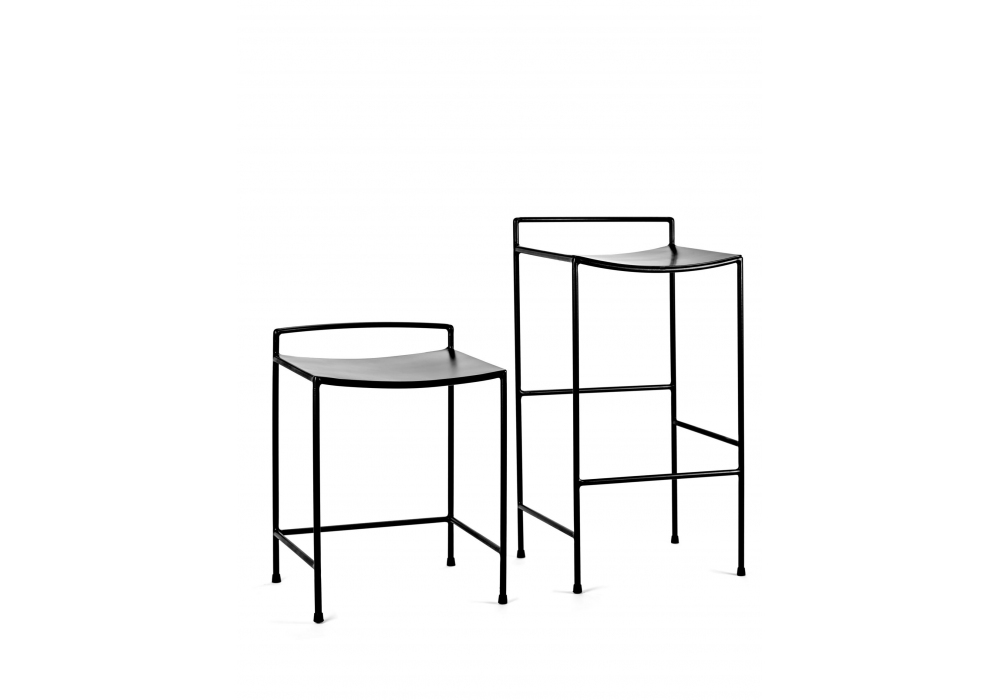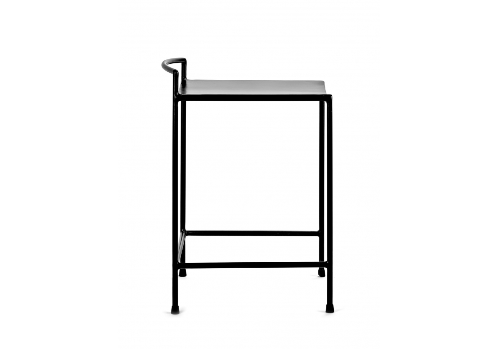 Nello conçu par Antonino Sciortino pour Serax est un tabouret, conçu à l'intérieur en métal peint en noir, avec une structure et une assise quadrangulaires. Nello est disponible en deux tailles différentes.