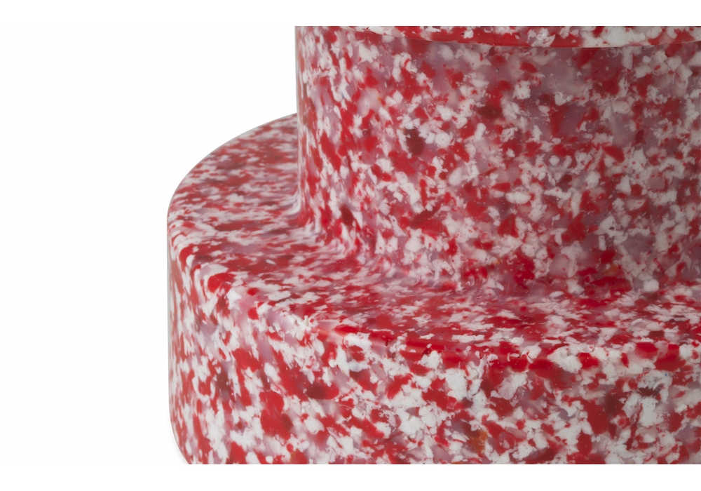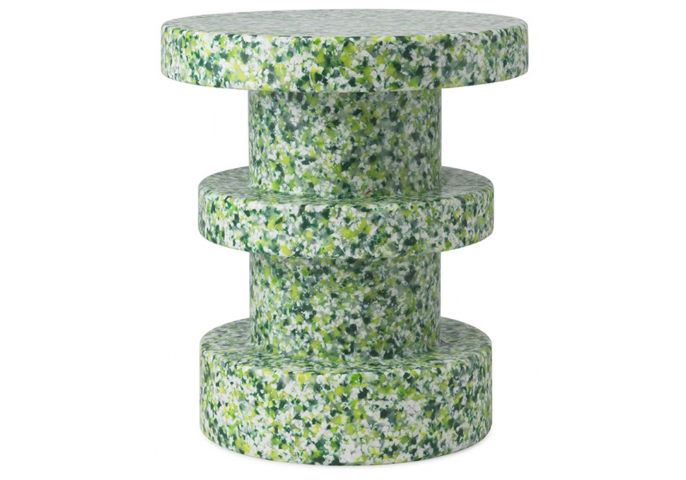 Bit Stack, conçu par Simon Legald pour Normann Copenhagen est un tabouret entièrement structuré en matière plastique recyclée, de forme cylindrique en trois finitions différentes; rouge, vert ou blanc.