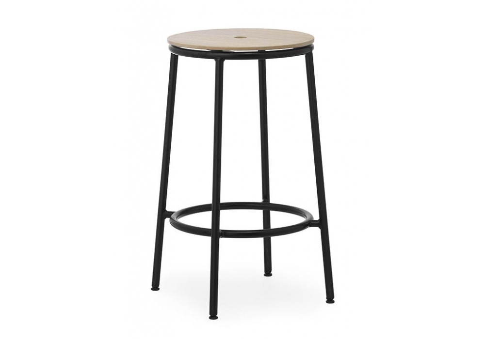 Circa, conçu par Simon Legald pour Normann Copenhagen est un tabouret, avec pieds et structure portante en acier, et avec assise en bois ou aluminium. Circa est disponible en différentes finitions et en différentes tailles de tee.