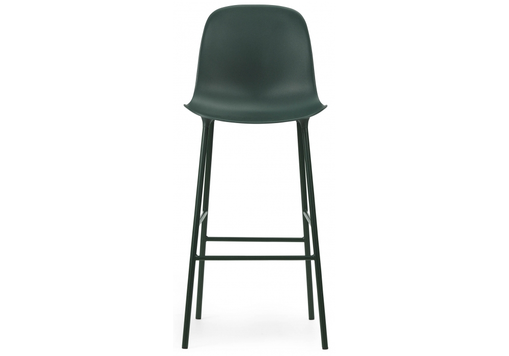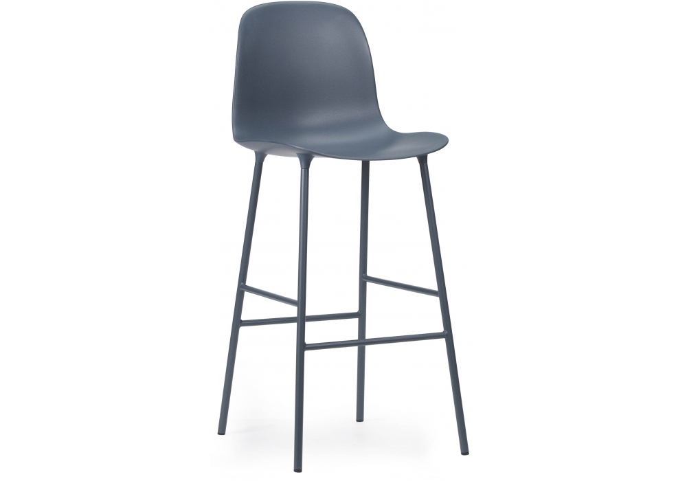 Form Bar, conçu par Simon Legald pour Normann Copenhagen est un tabouret, avec pieds et structure portante en acier, et avec assise et dossier en un seul corps, en matière plastique. Form est disponible en différentes finitions et en deux tailles différentes.
