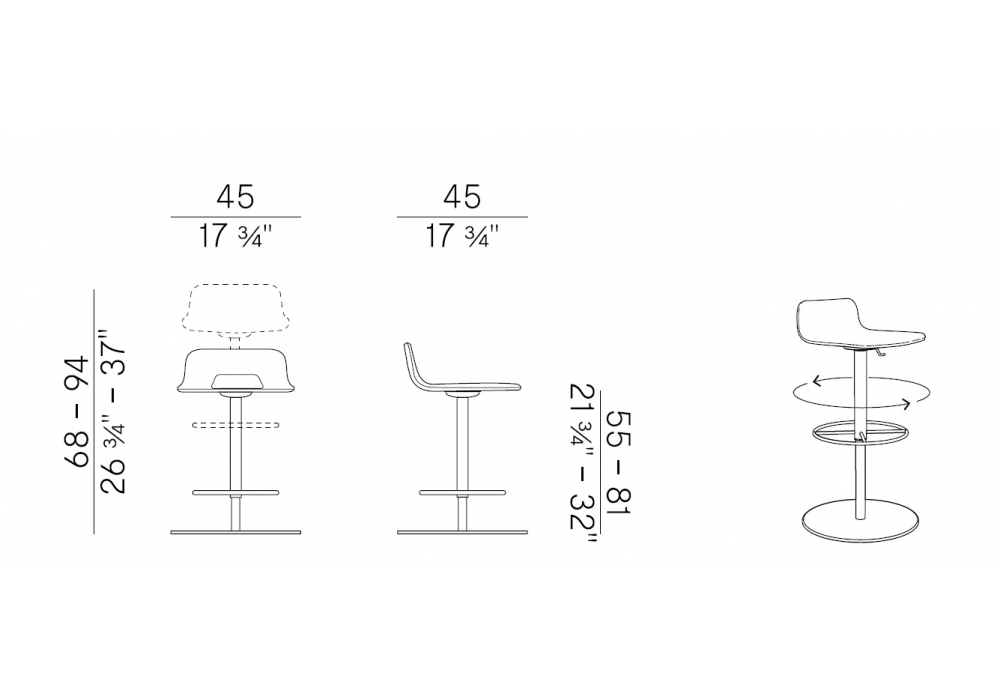 Torso conçu par Gianluigi Landoni pour Potocco est un tabouret extensible avec piston à gaz structuré en métal de différentes couleurs. Le siège se compose d'une monocoque en forme, rembourrée et recouverte de différents types de tissu, cuir ou éco-cuir. Torso est disponible avec une base pivotante circulaire ou quadrangulaire.