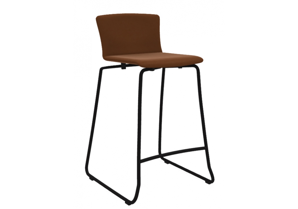 Olimpia Padded conçu par Vico Magistretti pour DePadova est un tabouret rembourré et rembourré avec structure en acier thermolaqué noir et assise en contreplaqué de hêtre courbé, rembourré de polyuréthane et revêtement en cuir ou en tissu.