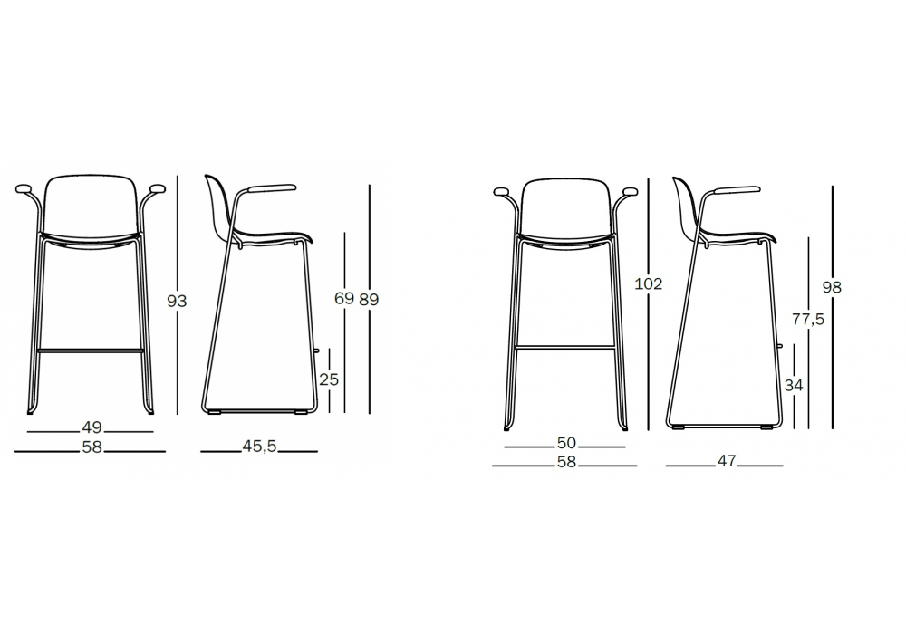 | Hauteur de siège | 69 cm; 77,5 cm. |
